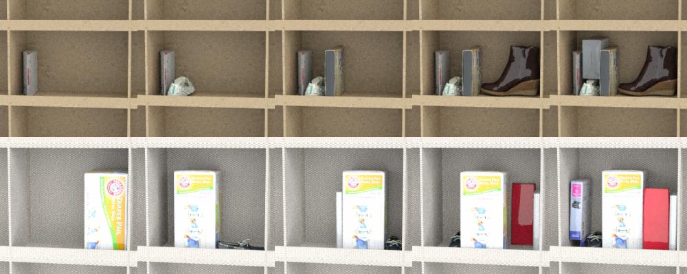 - various bin configuration (fabric texture, size aspect ratios, neighboring bins as a background)